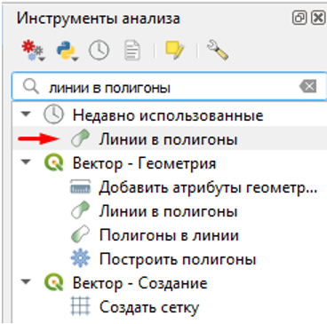 4. Преобразовать импортированный dxf-файл в полигон. Для этого выбрать инструмент «Линии в полигоны» в инструментах анализа.