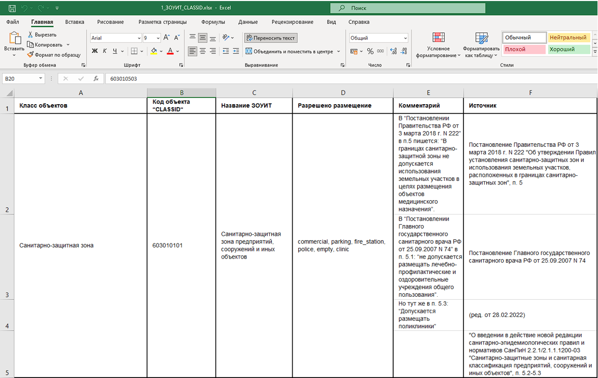 4. Заполнить код для ЗОУИТ (перечень кодов в соответствии с описанием слоев по Приказу Министерства экономического развития от 9 января 2018 г. №10 - см. в Microsoft Excel-файле «ЗОУИТ_CLASSID»).