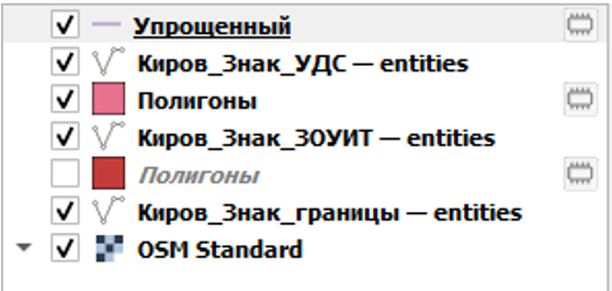 В результате упрощения получен новый временный слой «Упрощенный» в диспетчере слоев.