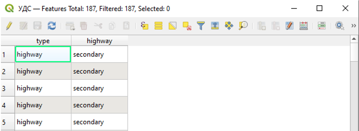 3. Открыть таблицу атрибутов полученного временного слоя «Упрощенный». В режиме редактирования (иконка