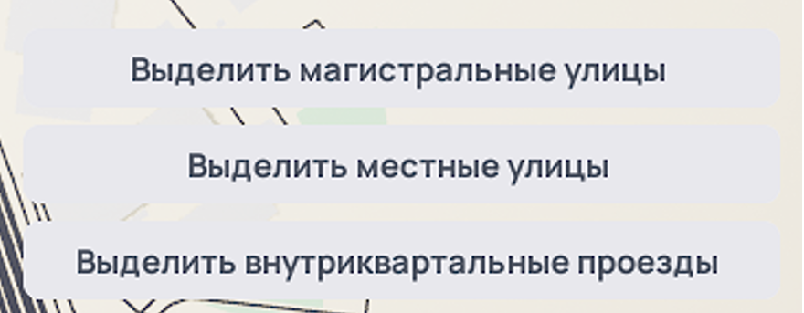 или с помощью инструмента выделения, позволяющего выбрать сегменты одинакового типа (одной категории улиц).